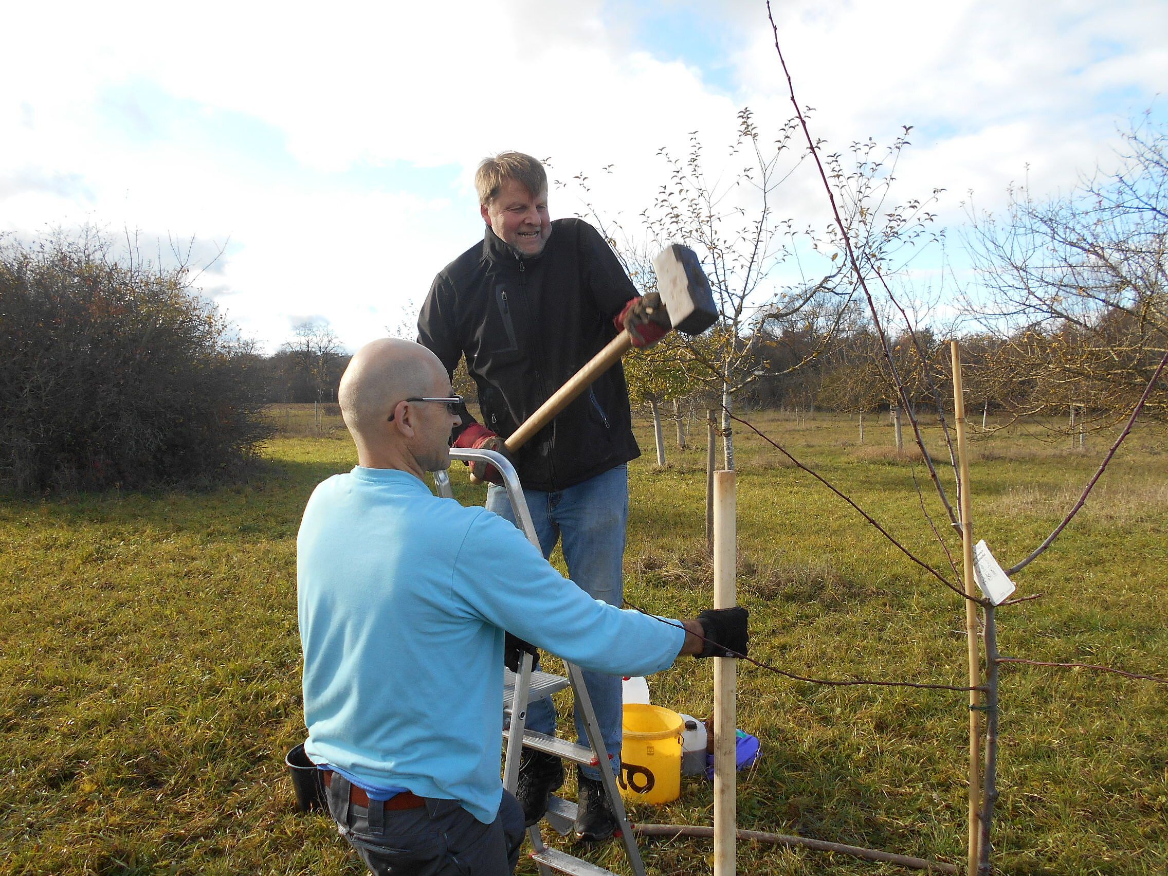Ziel der Biotoppflege ist es, seltene Lebensräume zu erhalten und die darin vorkommenden Arten zu fördern. An unserer Streuobstwiese am Mondscheinweiher fallen mindestens zweimal im Jahr Pflegearbeiten an, wie das Entkrauten der Baumscheiben, Pflegen der Baumkronen oder Mäharbeiten.