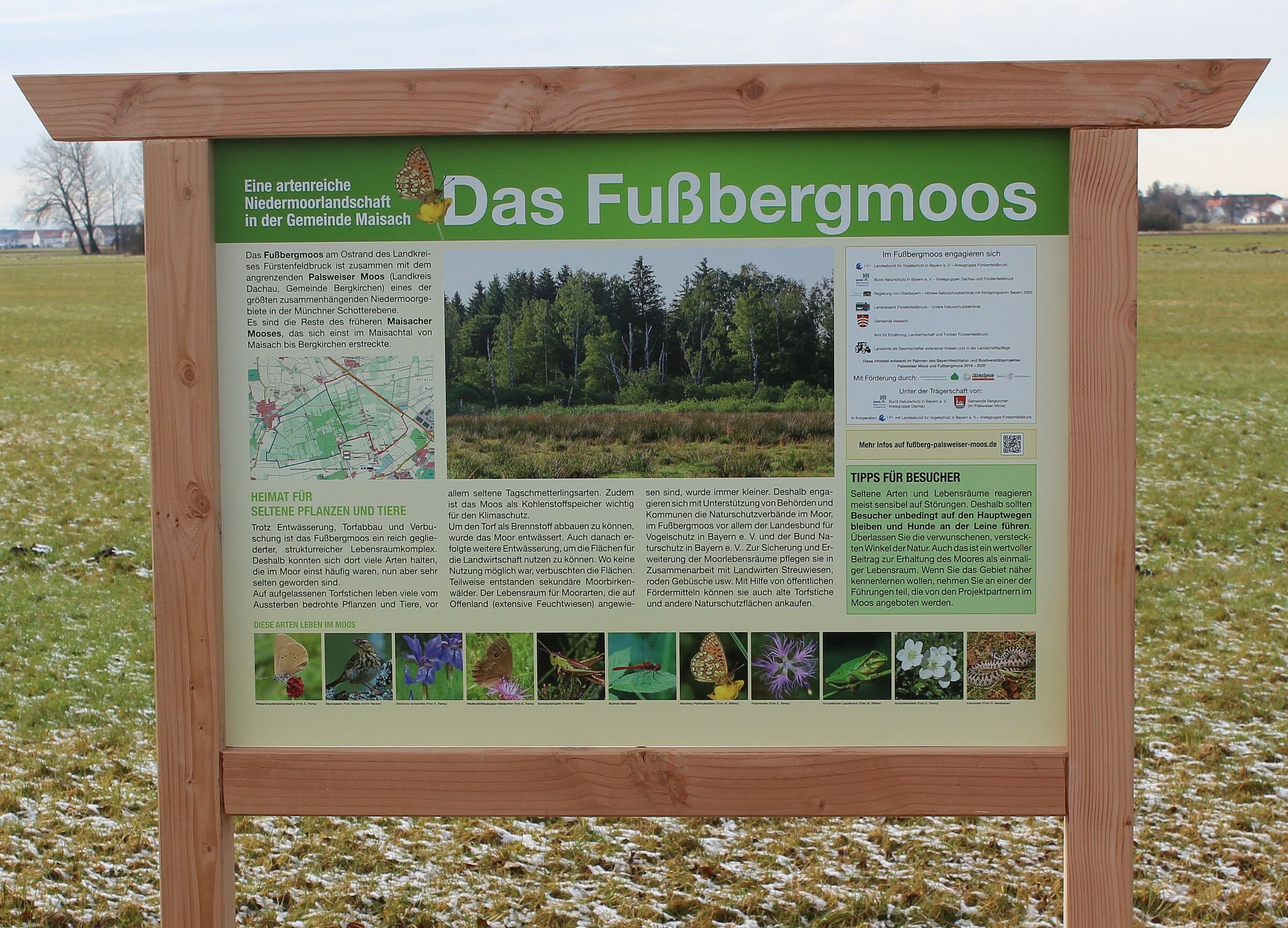 Damit die Besucher des Moores auch wissen, in welchem naturschutzfachlich wichtigen Gebiet sie sich bewegen, wurden zum Ende des Projektes vier Infotafel aufgestellt. Ausführlichere Informationen können über die aktualisierten bzw. angepassten Seiten www.palsweiser-moos.de oder www.fußberg-palsweiser-moos.de im Internet abgerufen werden. Die Seiten sind für Handys optimiert, sodass Informationen auch direkt im Moos abgerufen werden können.