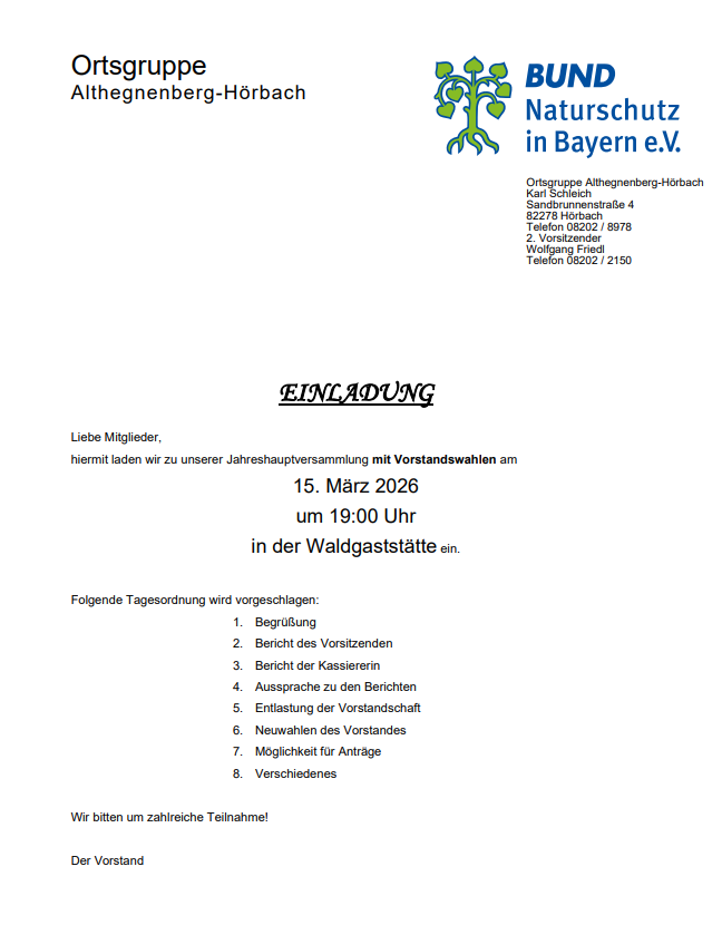 2024 feiert die Ortsgruppe Althegnenberg-Hörbach ihr 40-jähriges Bestehen.