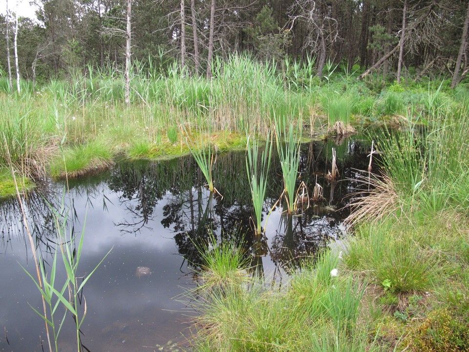 Der stellv. Kreisvorsitzende des BN Weilheim-Schongau, Hr. Dr. Helmut Herrmann, entführte die Radlertruppe in die Vergangenheit, als Wiesen noch Blütenmeere, und Moore noch richtig nass waren. Die Drumline sind lang gestreckte trockene Hügel, die durch das Auseinanderbrechen der Gletscher entstanden sind. In den Senken zwischen Ihnen sind Feuchtstandorte. So wechseln sich hier auf engstem Raume Trocken- und Nassstandorte ab, die eine in Europa einzigartige Artenvielfalt bieten. Die BN-Kreisgruppe hat im Laufe der letzten Jahre dafür gesorgt, dass diese Kleinodien erhalten, wiederhergestellt und vernetzt wurden. So besitzt die Kreisgruppe Weilheim-Schongau einen beneidenswert großen Schatz an Biotopflächen, deren Schutz und Pflege natürlich viel Arbeit bedeuten. Ende Juni, Anfang Juli blühen dort auf den Streuwiesen über 20.000 Sumpfgladiolen! Leider war auf Grund des nasskalten Frühjahres nur eine einzige Blüte zu entdecken. Zahlreiche andere seltene Pflanzen trösteten uns darüber hinweg.