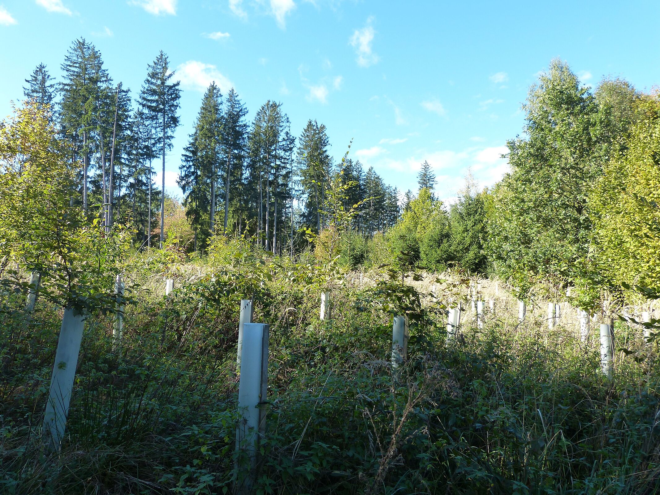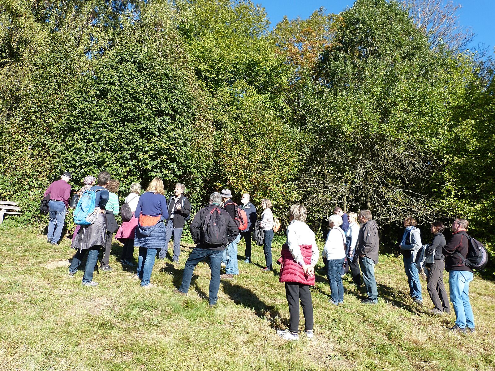 Bei der gut besuchten Führung am Parsberg wies Hans-Jürgen Gulder auf die bereits massiven Temperaturerhöhungen- und Niederschlagsdefizite hin, die sich seit einigen Jahren auch auf Holzbach und Germeringer See mit Trockenfallen bzw. niedrigen Pegelständen auswirken. Die früheren Fichtenreinbestände am Parsberg wurden bereits bei den Stürmen Vivian und Wiebke 1990 stark dezimiert, aber auch der Borkenkäfer tat sein Übriges dazu. Zwar forsteten die meisten Waldbesitzer fleißig mit überwiegend Laubmischwäldern auf, doch dauert es noch Jahrzehnte, bis ein geschlossener Waldgürtel entsteht, der seine Funktion als Wasserspeicher, Frischluftlieferant für Germering und Feinstaubfilter wieder vollumfänglich einnehmen kann. Bei einem kleinen, eingezäunten Bereich mit Tannen und fünf Laubbaumarten, die aus Naturverjüngung entstanden sind, konnte deutlich gemacht werden, wie auf Flächen, zu denen das Rehwild keinen Zugang hat, eine artenreiche Waldverjüngung von alleine und völlig kostenlos entsteht.