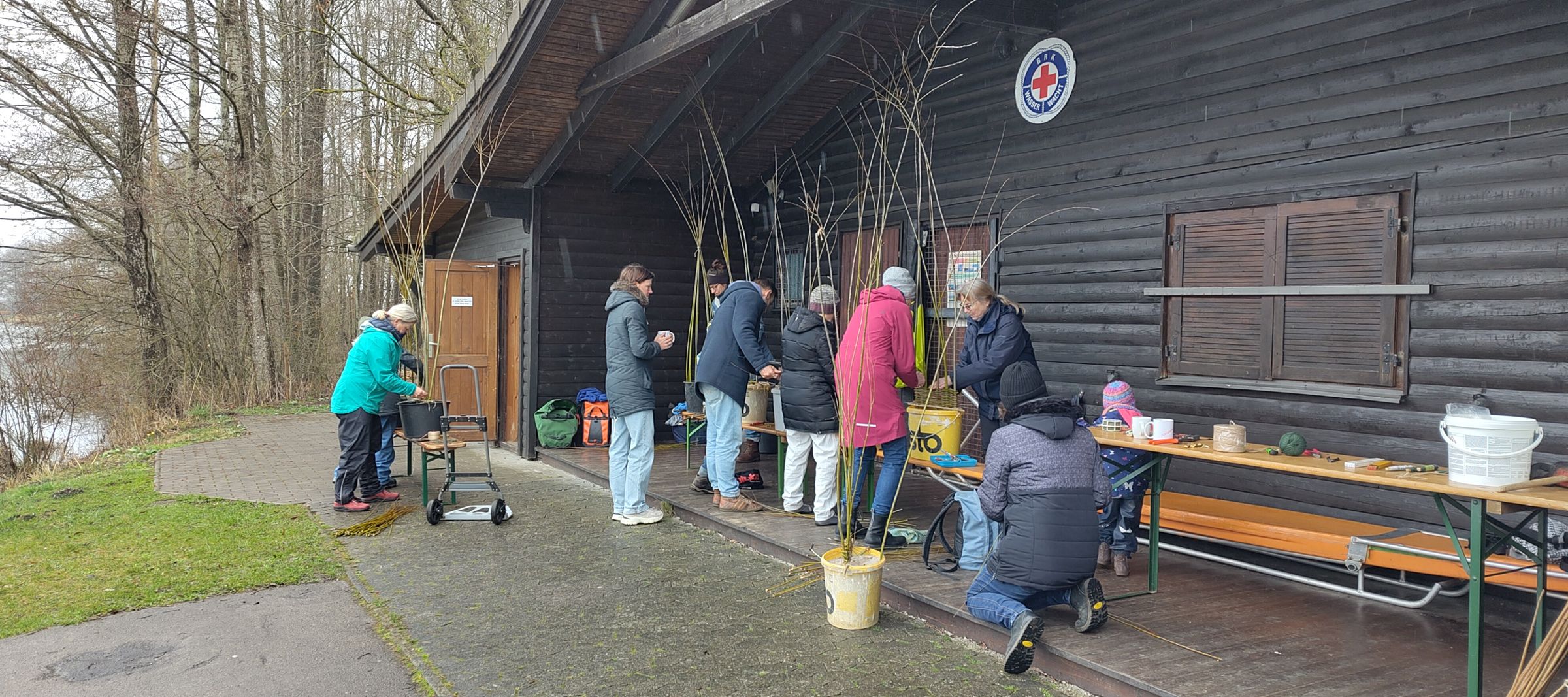 Der diesjährige Workshop Ende März war auch an Familien mit Kindern gerichtet und fand wieder direkt am Germeringer See statt. Trotz der Kälte und der Regenschauer wurden mit Elan Klettergerüste für Pflanzen und kleine Weidezäune als Beeteinfassungen geflochten.