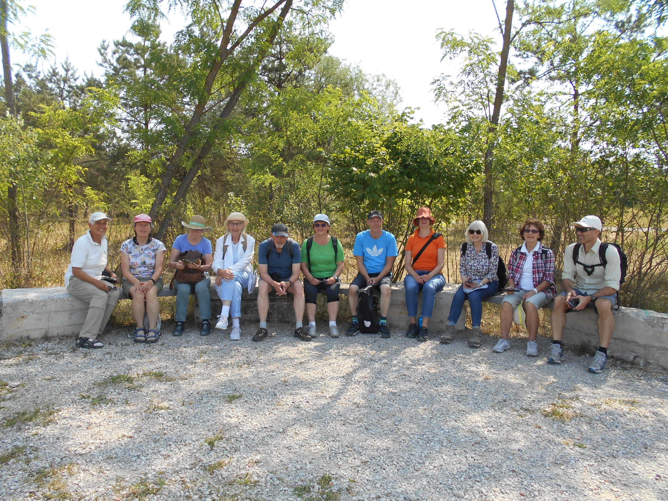 Nach zwei Stunden in brütender Hitze verabschiedete uns Frau Sorge und wir suchten einen schattigen Platz für eine Brotzeit. Da das Heidehaus geschlossen war, blieb uns nur der U-Bahnhof mit seinen Tischen und Bänken vor dem geschlossenen Kiosk. Immerhin erstaunlich kühl.